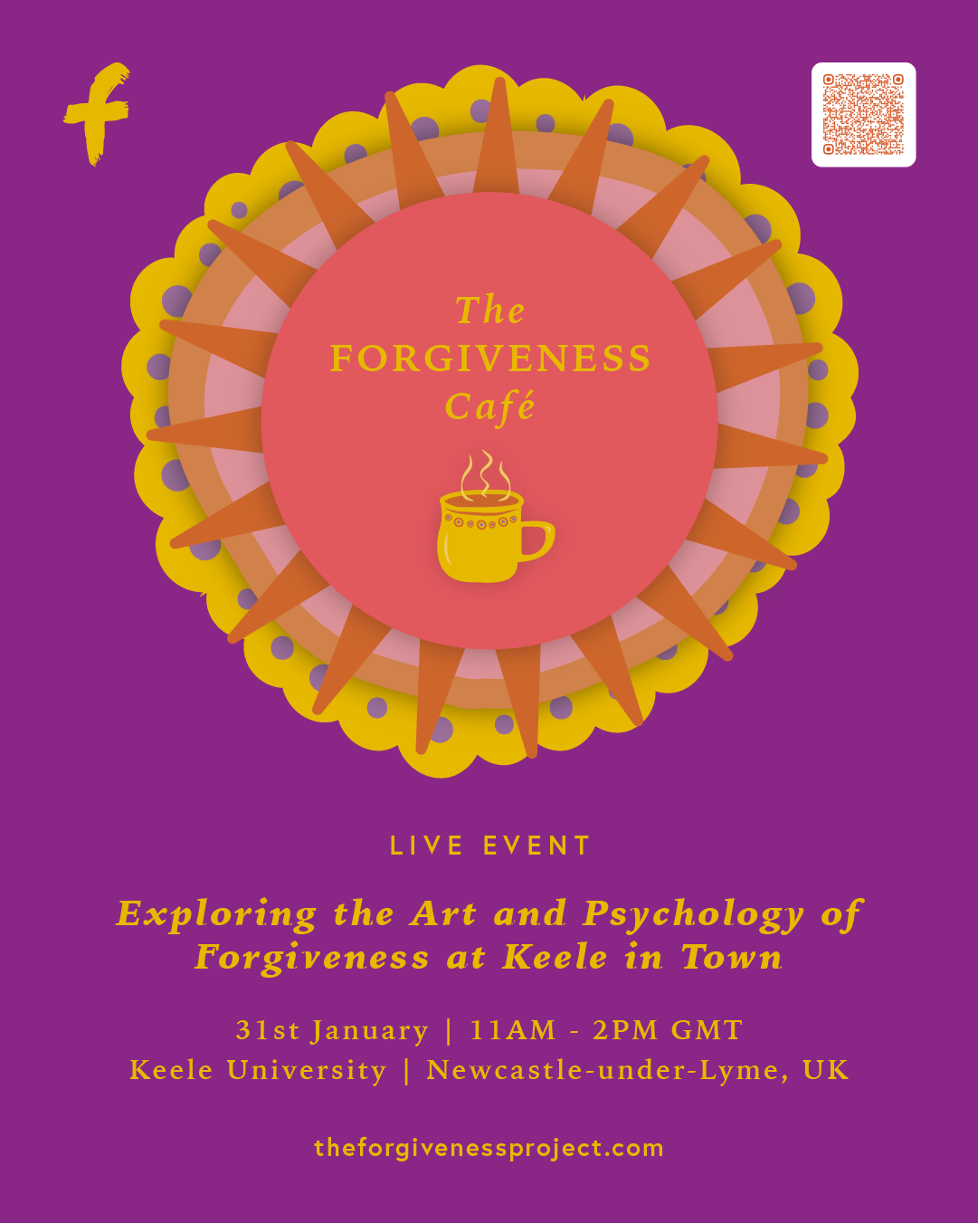 We’re excited to invite you to the first Forgiveness Café of 2026, taking place at Keele University in Newcastle-under-Lyme, England. This Café will be led by our Executive Director Sandra Barefoot, and Senior Lecturer in Social and Political Psychology at Keele University, Dr. Masi Noor, and offers a free-flowing yet deeply insightful space for reflection, dialogue, and personal growth at a time of year when themes of renewal and healing feel especially meaningful.